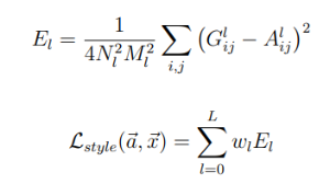 Style Loss는 레이어 내부의 특징맵을 아래 수식의 Gram matrix(G) 를 이용하는데, 이는 특징맵을 벡터화하여 서로 내적하는 것으로 결국 입력이미지와 타겟이미지간의 Gram matrix 값을 비교하는 것이다.